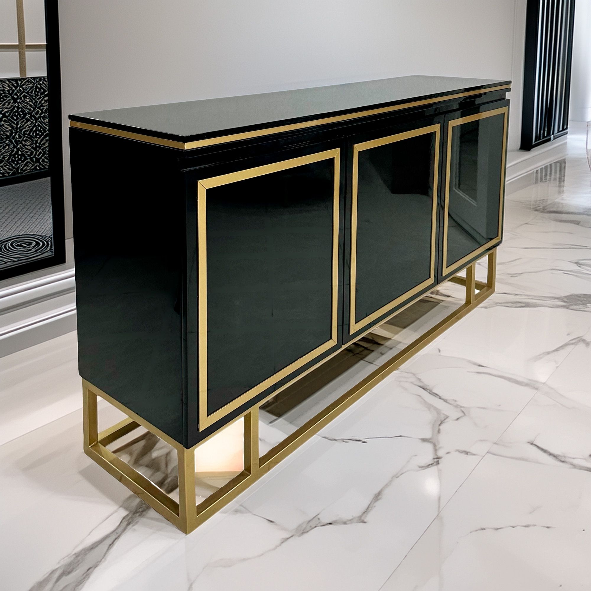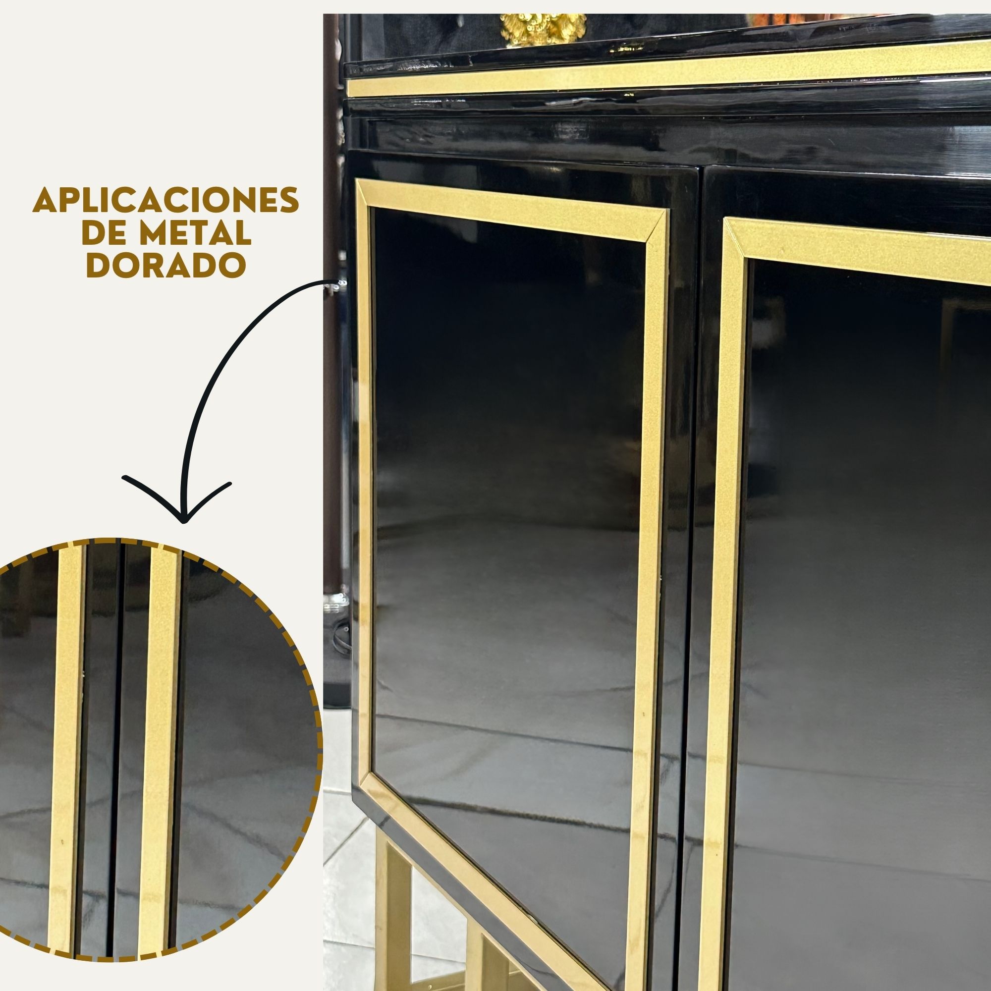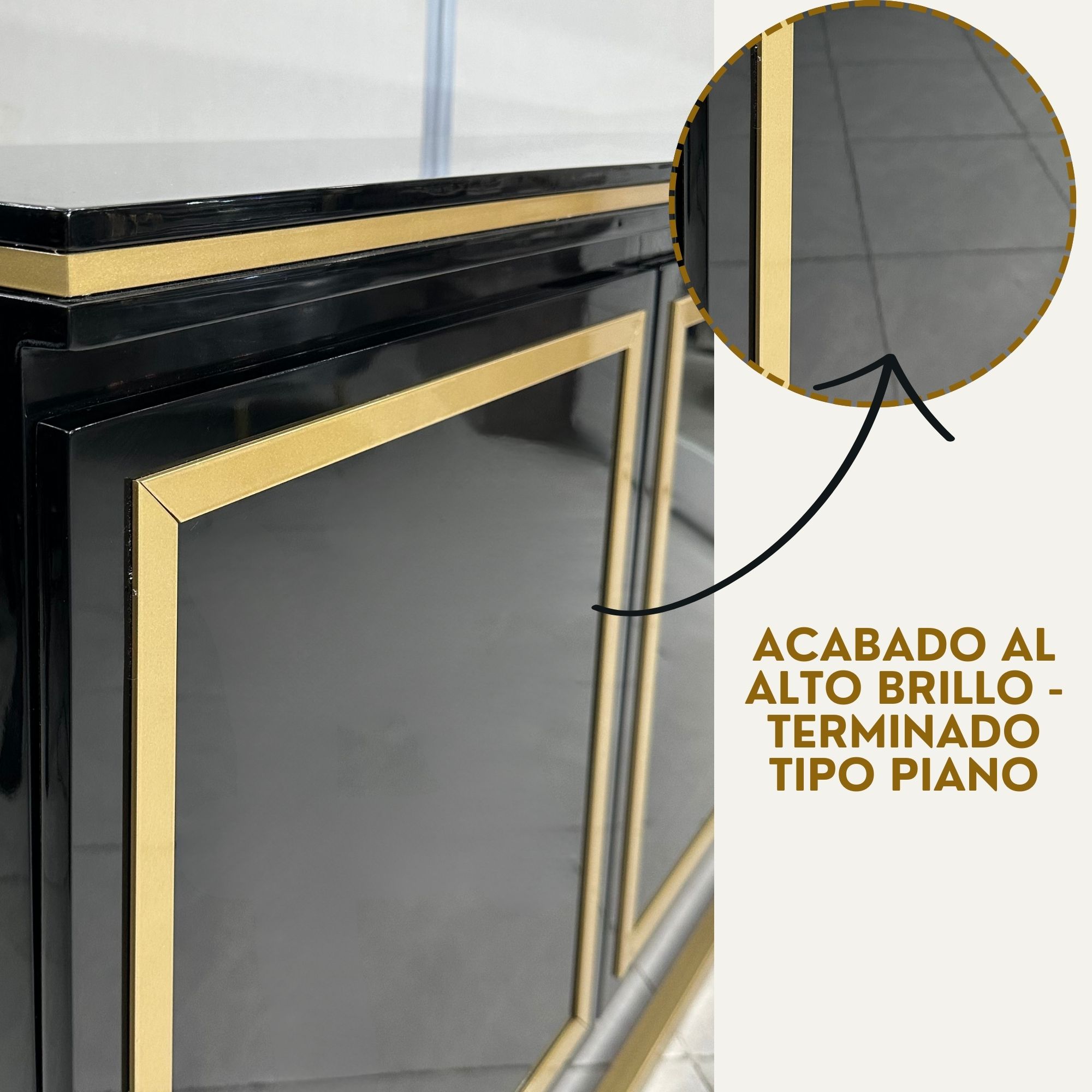 La Bufetera Cannes es una pieza de diseño excepcional que fusiona lujo, funcionalidad y materiales premium. Inspirada en la sofisticación de los interiores más exclusivos, su acabado tipo piano en alto brillo y detalles dorados la convierten en el centro de atención de cualquier espacio. Ideal para salas, comedores o espacios de alto diseño, esta bufetera ofrece un equilibrio perfecto entre elegancia y practicidad.