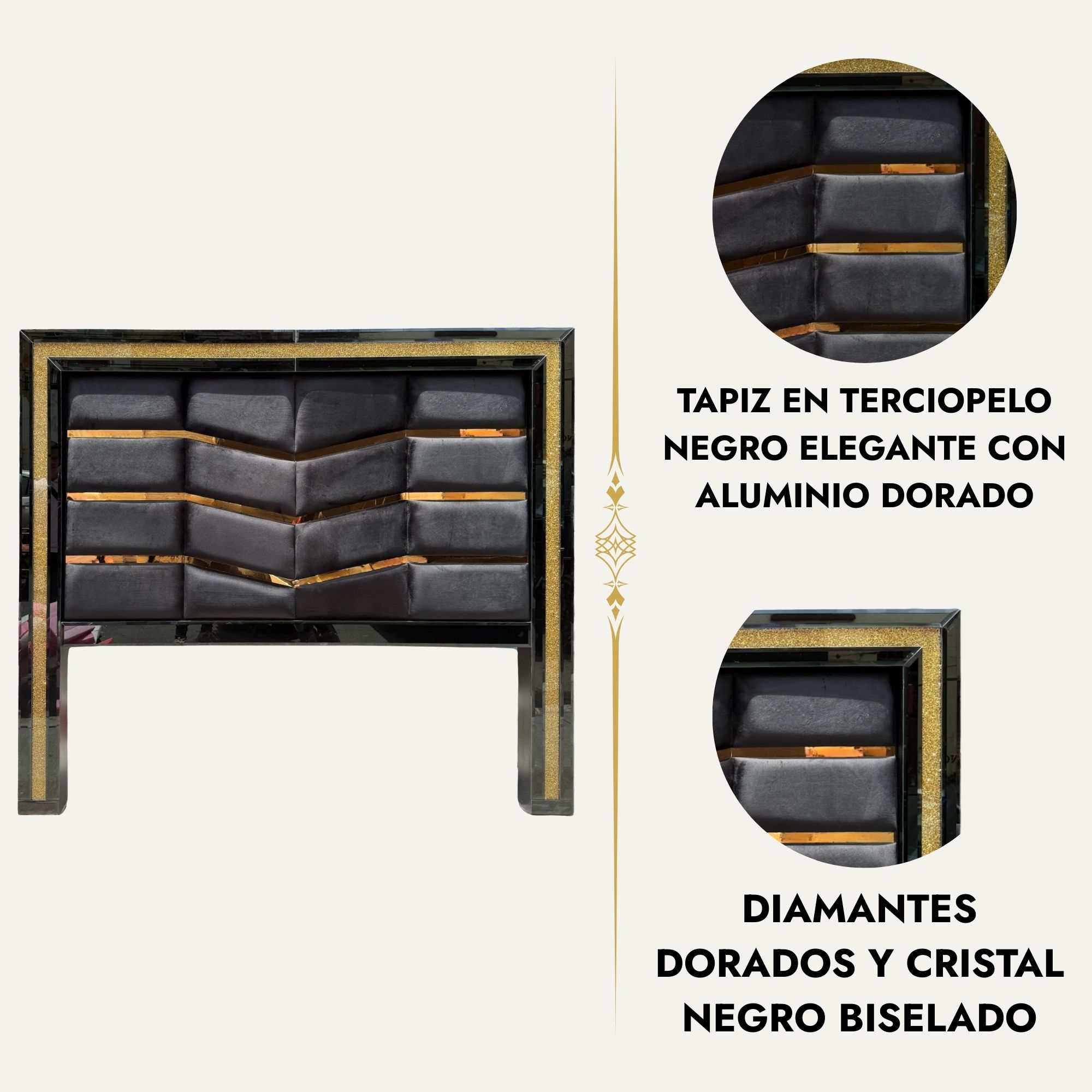 Cabecera Diamante x Golden Luxe en Cristal Negro y Dorado