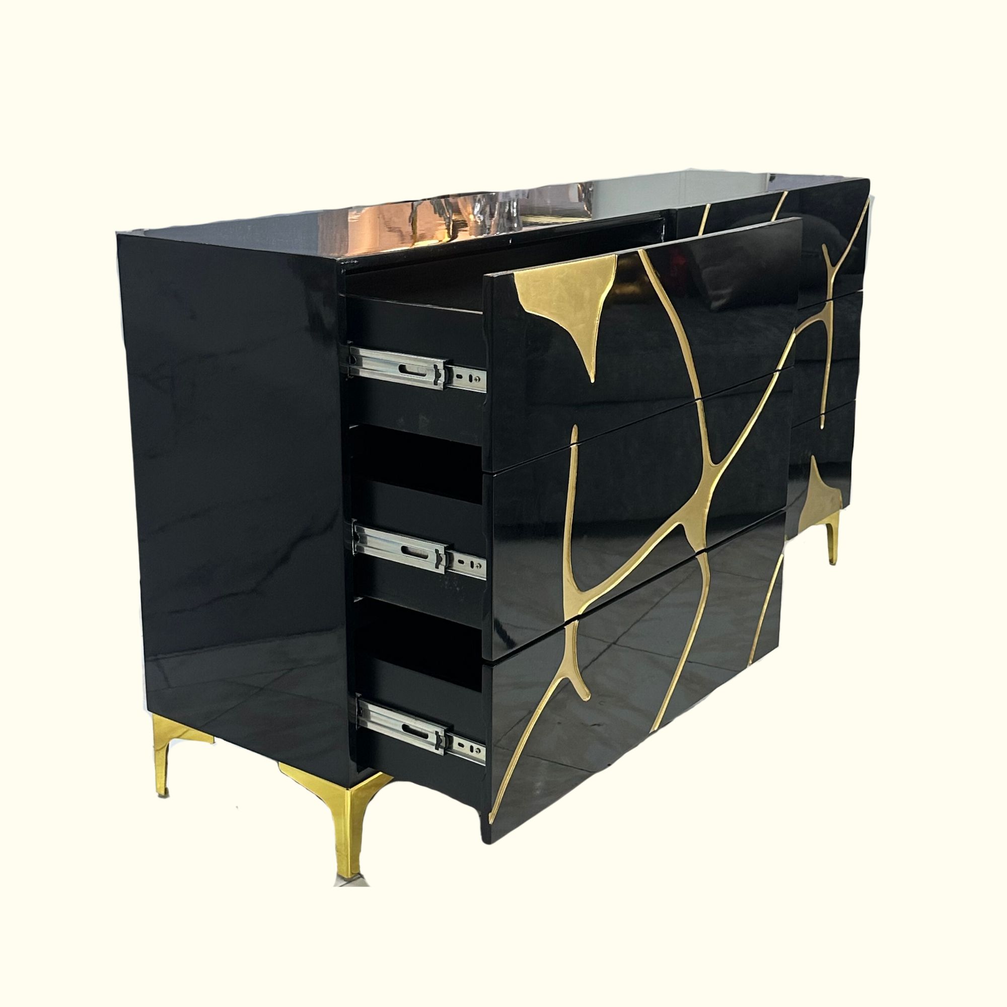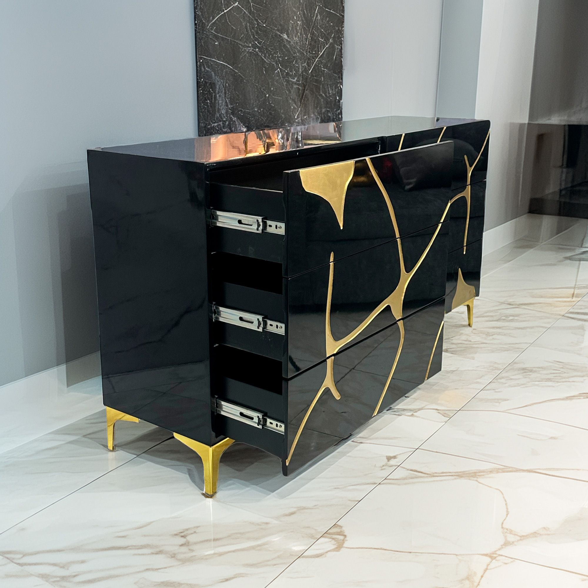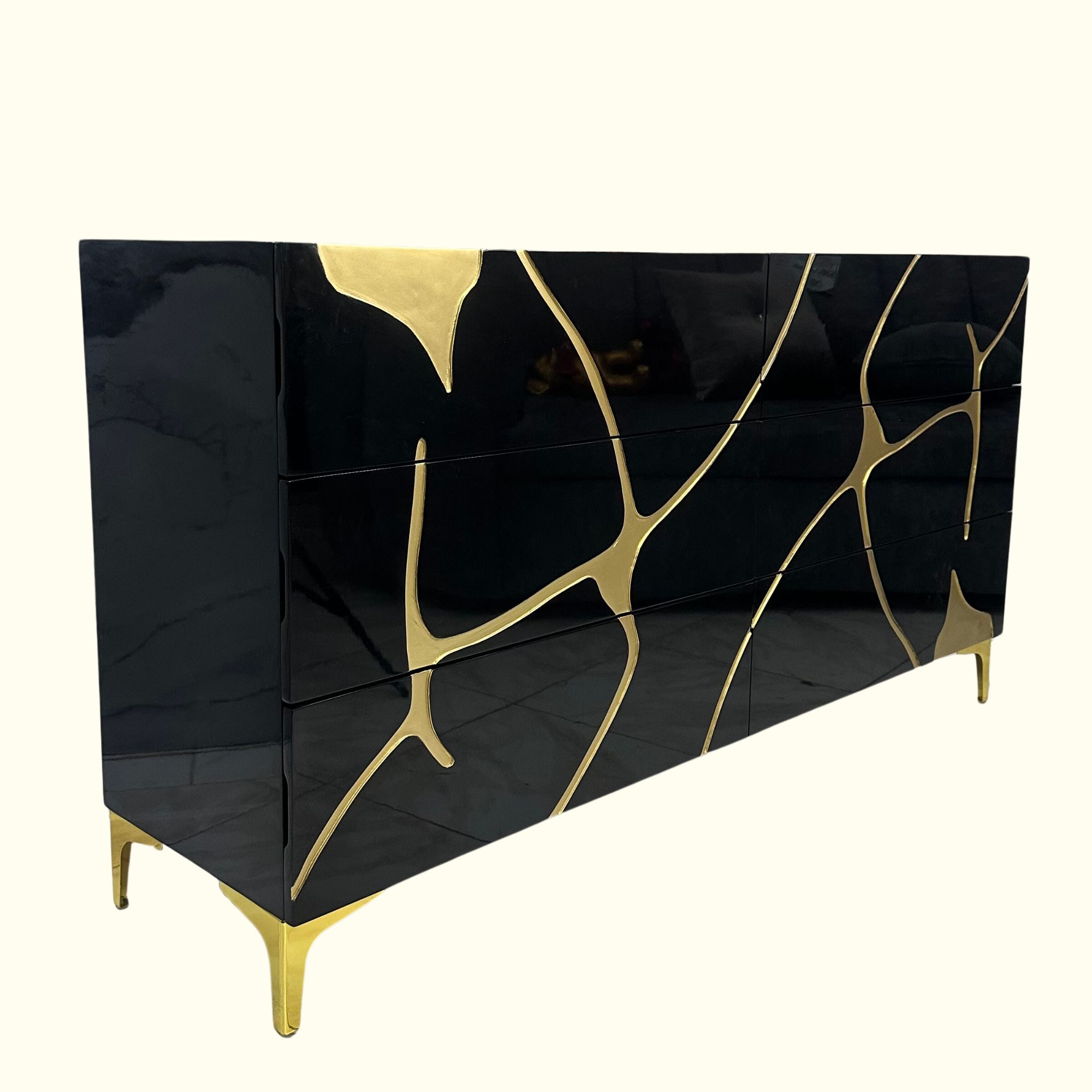 Cajonera de Lujo Horizontal Tallada en Alto Brillo Negro