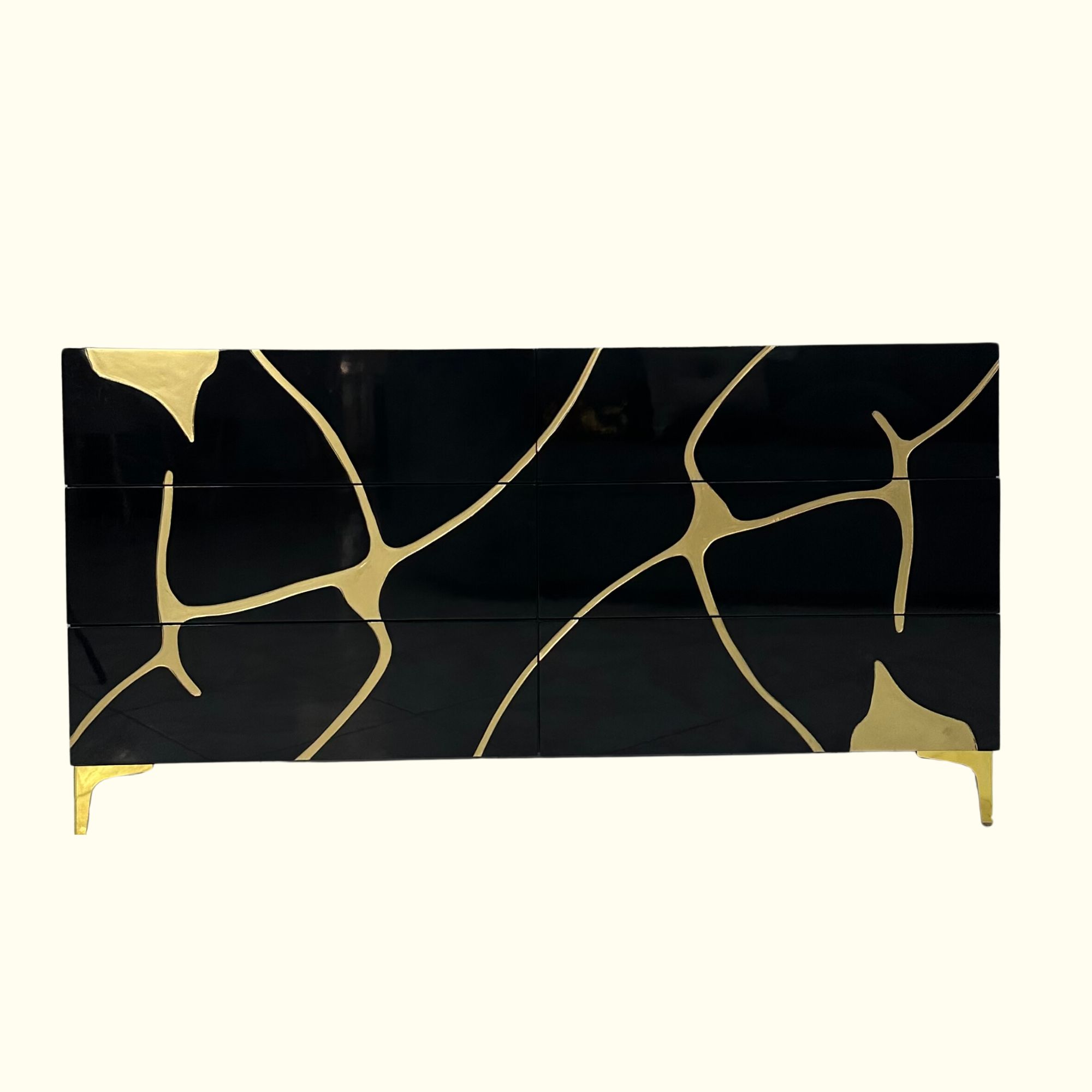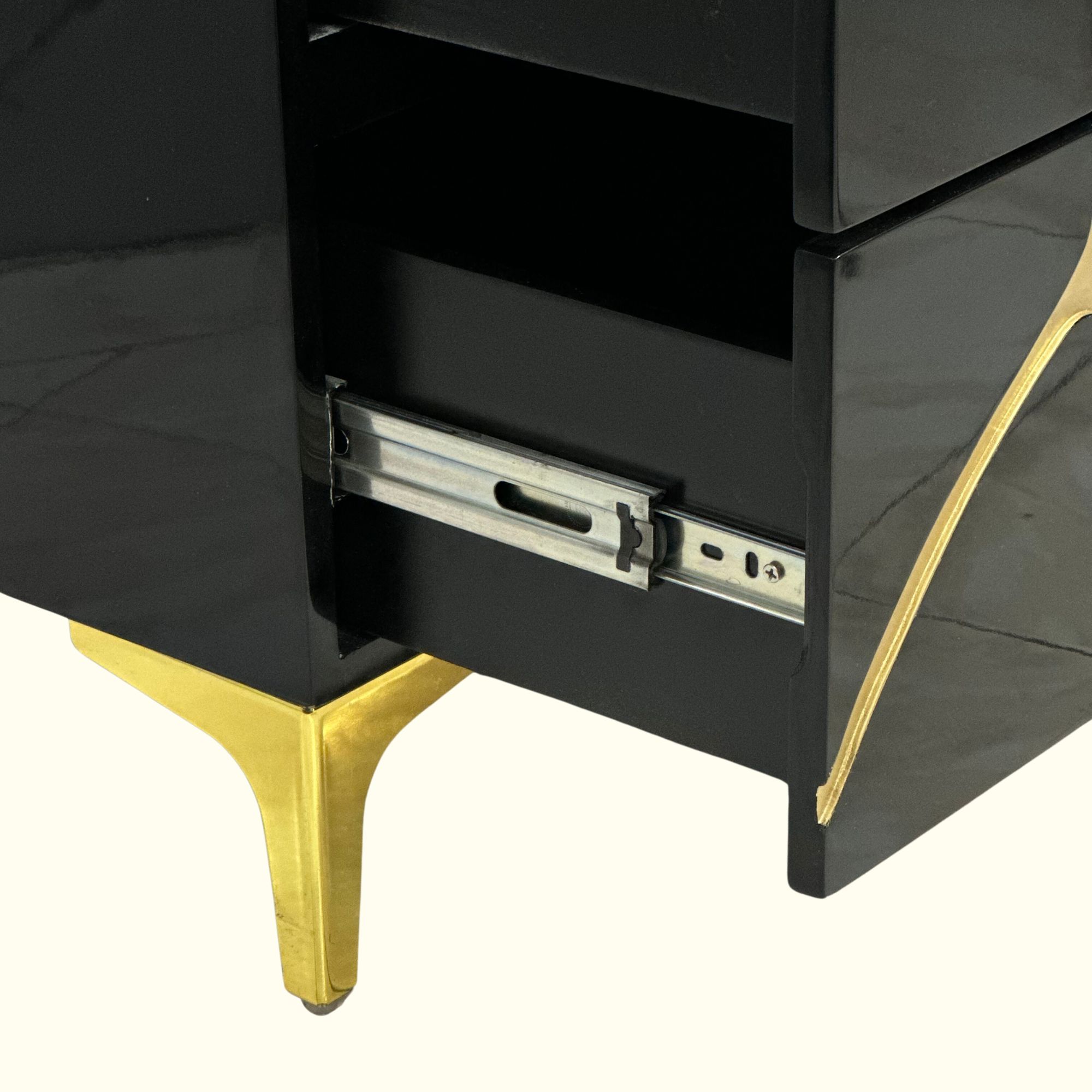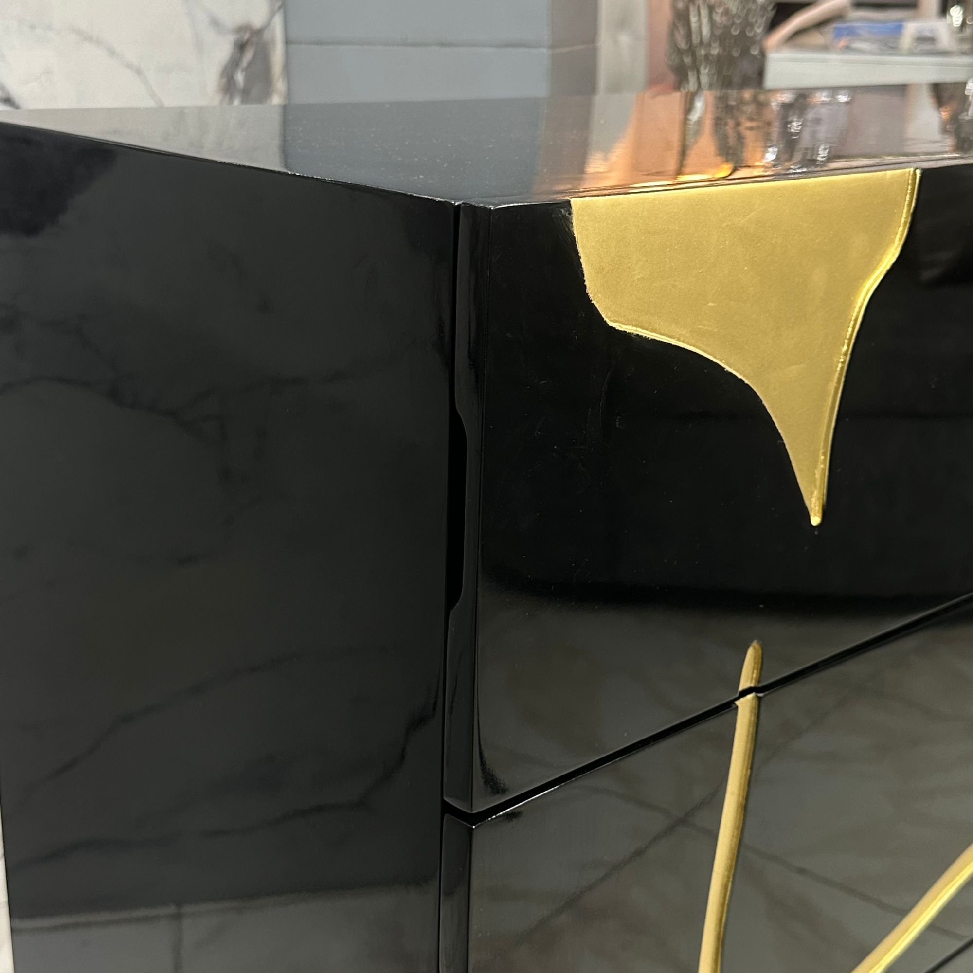 Cajonera de Lujo Horizontal Tallada en Alto Brillo Negro