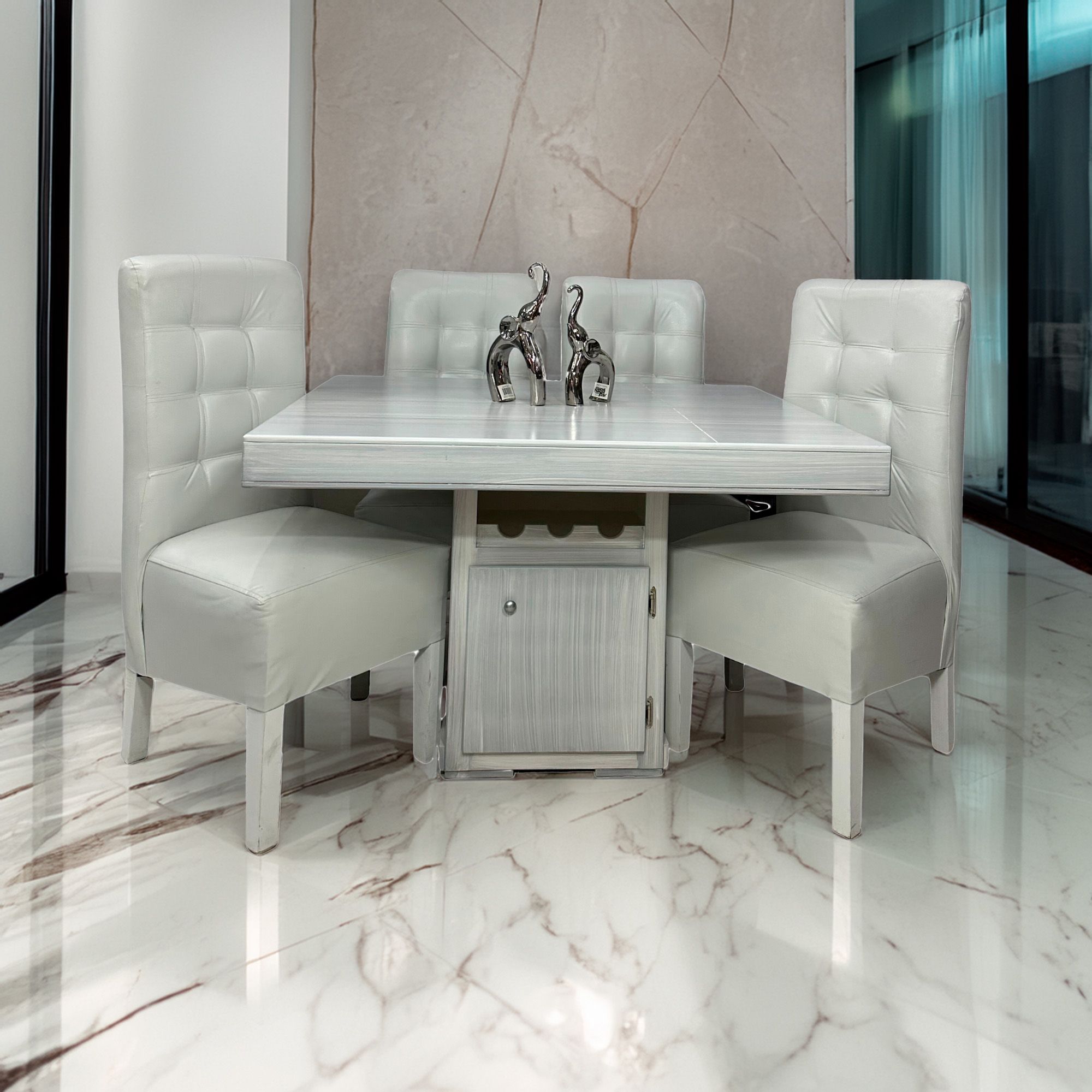 El Comedor SINGAPUR es la fusión perfecta entre elegancia clásica y practicidad moderna. Diseñado para espacios donde cada elemento cuenta, este conjunto para 4 personas está pensado para brindar estilo, confort y utilidad en tu hogar.