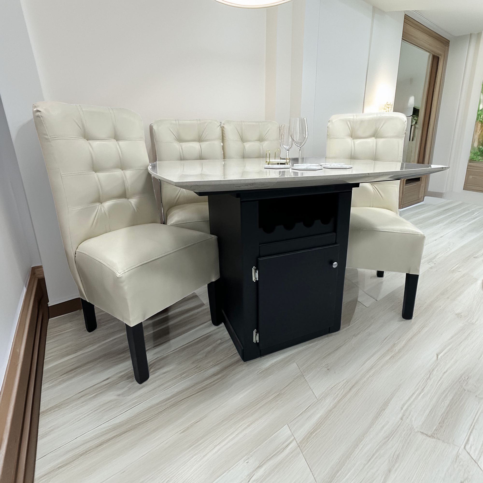 Lleva tu comedor a otro nivel con el imponente modelo KYOTO, una fusión de diseño moderno, materiales premium y detalles de lujo. Este set fue creado para quienes valoran la durabilidad, la comodidad y el estilo refinado.