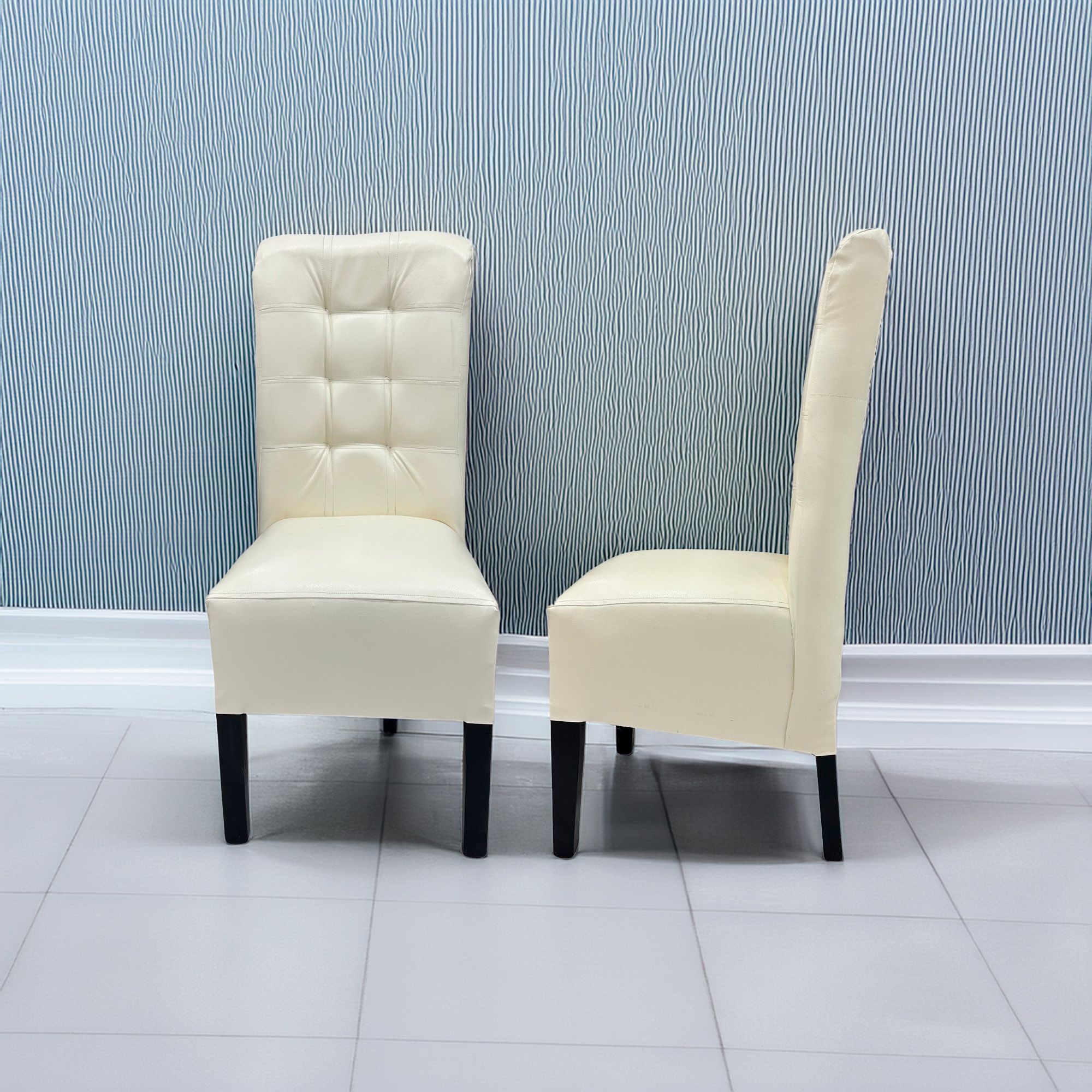 - Juego de 4 sillas tapizadas en tela Flotter tipo piel, que ofrecen una apariencia refinada y una textura suave y resistente.