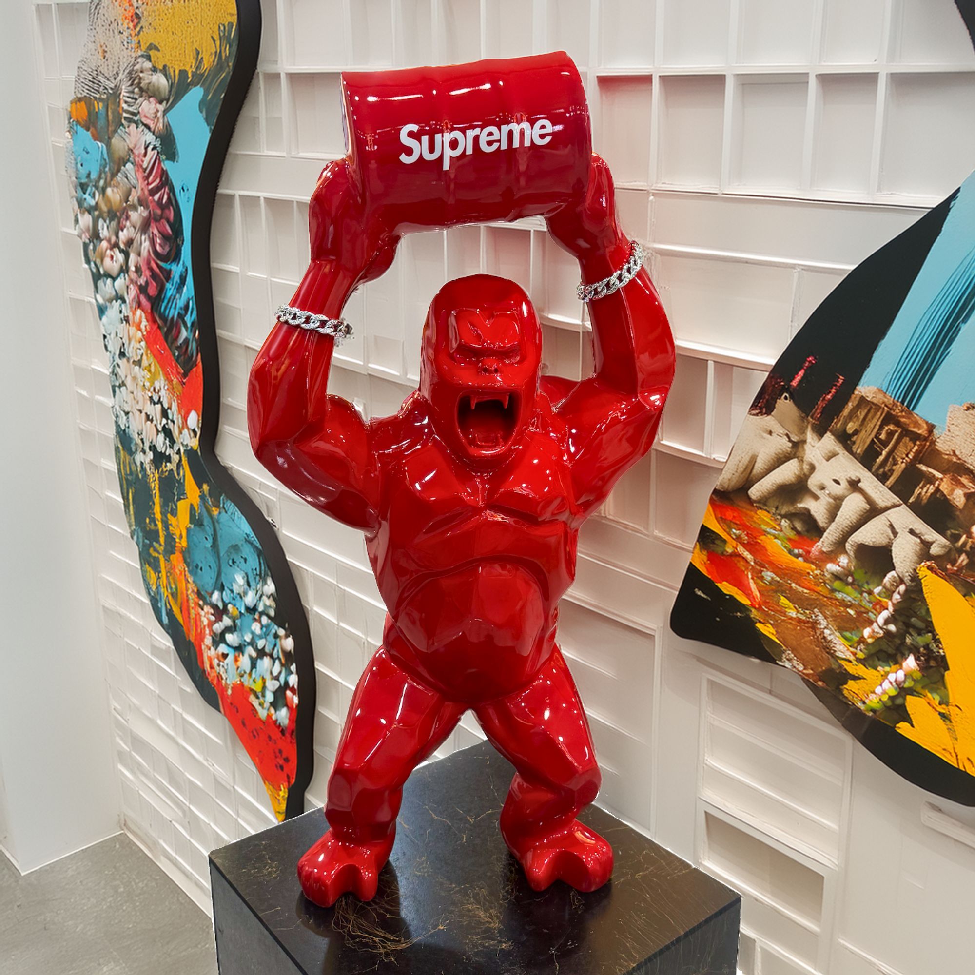 Inspirada en la icónica fuerza del gorila estilo King Kong, esta figura transmite carácter y presencia. Su acabo dorado de alto brillo le da un toque de lujo y modernidad que se adapta tanto a espacios residenciales como comerciales.