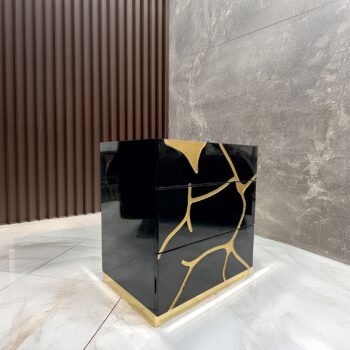 Cajonera (124×80×40 cm): con cuatro amplios cajones, cubierta de cristal y piedra de ónix semipreciosa, ideal para mantener el orden con distinción.