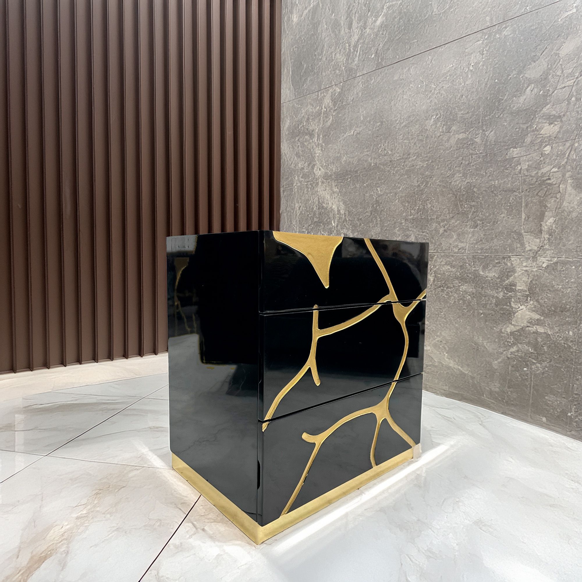 Dale un toque de elegancia y distinción a tu habitación con nuestro buró de lujo de tres cajones, una pieza excepcional que refleja el más alto nivel de sofisticación y exclusividad. Diseñado para quienes buscan un mueble que combine funcionalidad, glamour y materiales premium, este buró es más que un simple complemento: es una declaración de estilo.