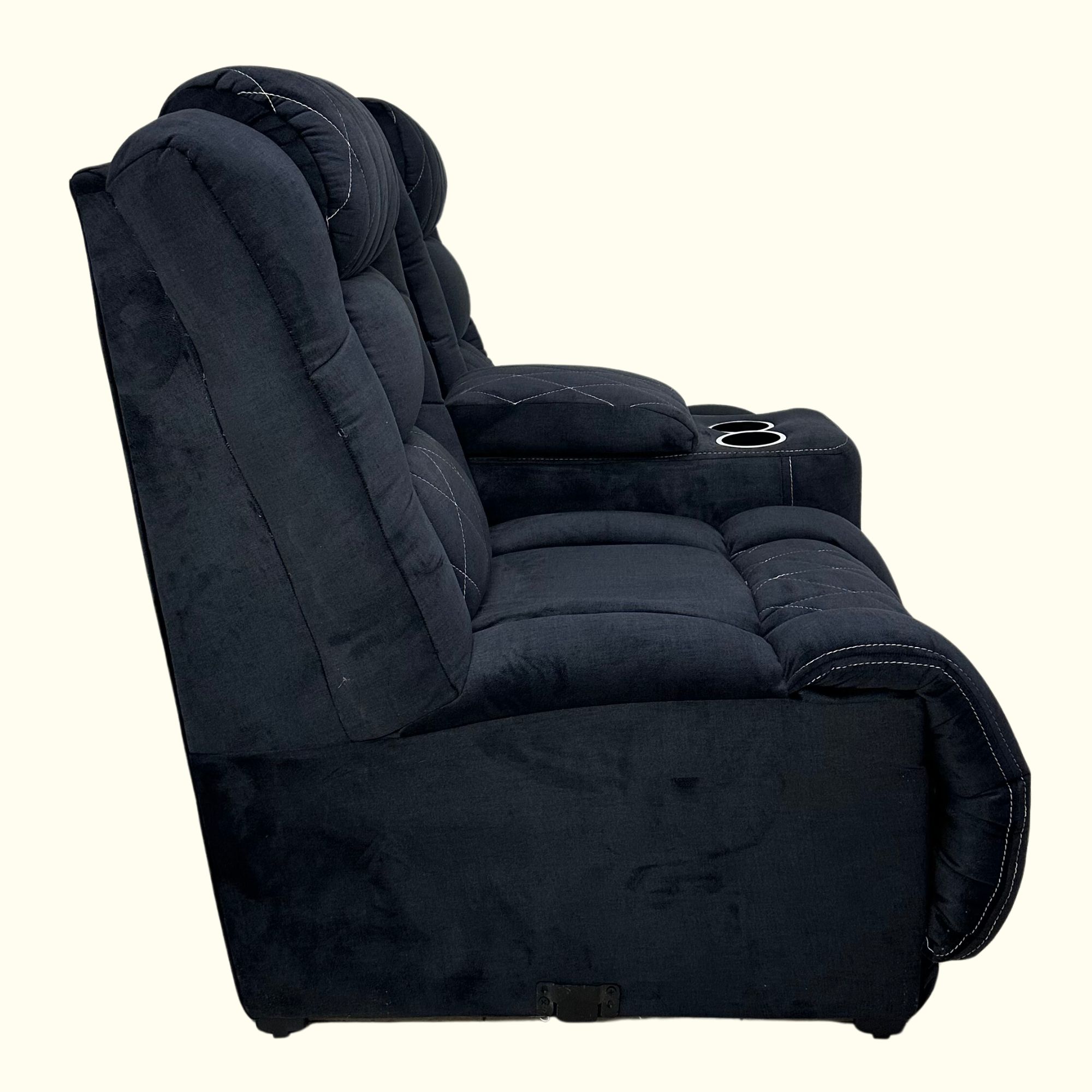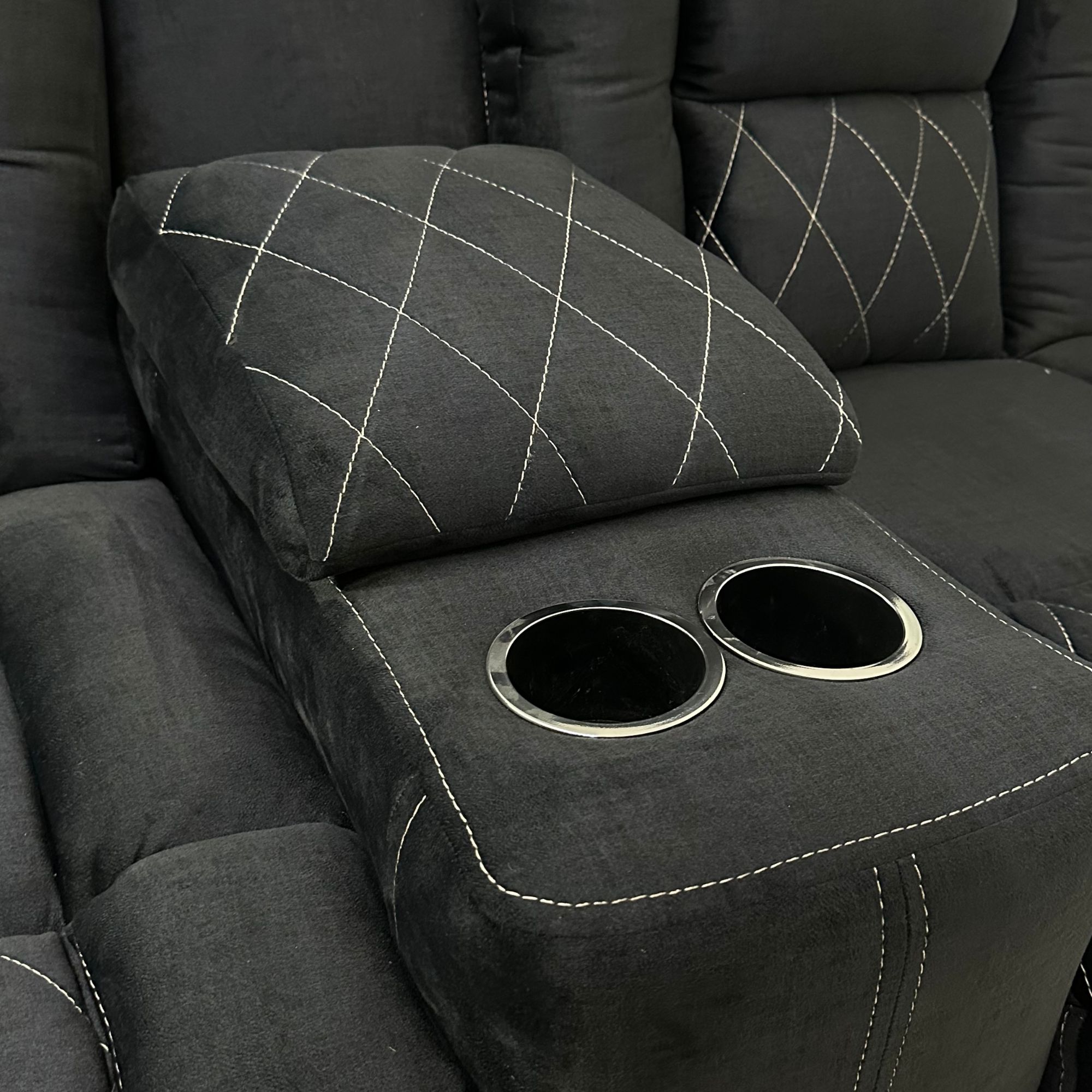 - Love Seat con portavasos y un práctico baúl oculto, ideal para guardar controles remotos o pequeños objetos.